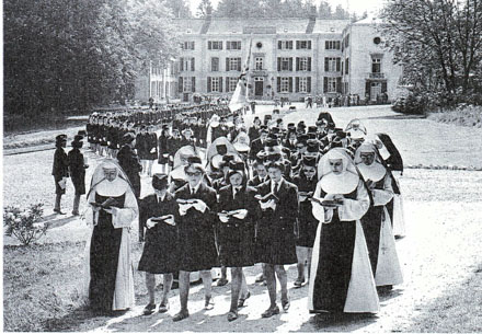 En novembre 1940, les soldats allemands ayant envahi le pensionnat d’Ecloo, Mgr VAN RECHEM cherchant un asile provisoire, propose le transfert des élèves. Vingt-huit familles acceptent. Une petite communauté de quatre Soeurs s’installe au Château dès le mois d’août 1940.